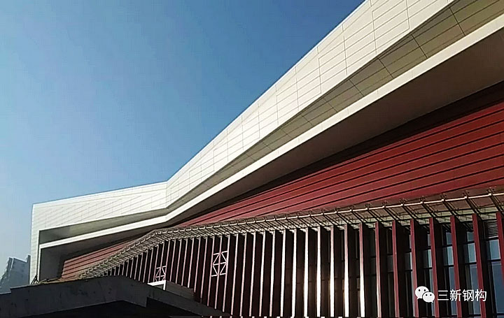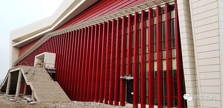 2、項(xiàng)目采用開放式金屬幕墻系統(tǒng),凹槽、洞口、窗口、弧形造型、傾斜面折線、波紋造型的方案設(shè)計(jì),金屬板采用磚紅色金屬板,生產(chǎn)后直接發(fā)運(yùn)至現(xiàn)場安裝,金屬板顏色種類豐富且減少噴涂過程,縮短生產(chǎn)工期;