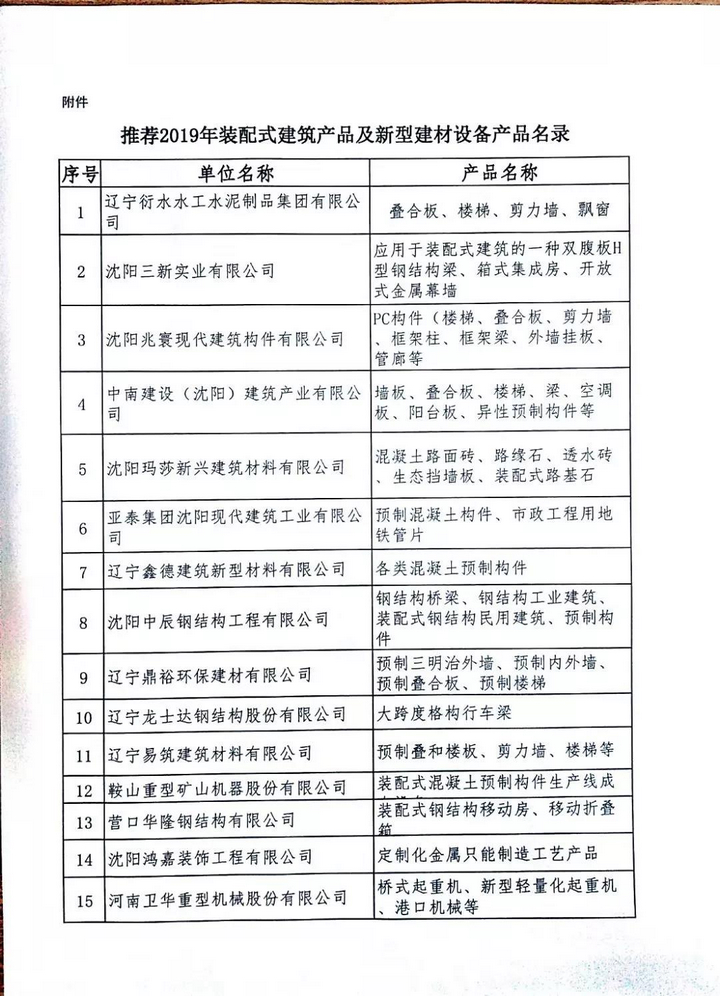 2019年8月14日,沈陽市城鄉(xiāng)建設(shè)局發(fā)布《推薦2019年裝配式建筑產(chǎn)品及新型建材設(shè)備產(chǎn)品名錄》,我公司雙腹扳H型鋼結(jié)構(gòu)梁、箱式集成房、開放式金屬幕墻等產(chǎn)品成功入選。