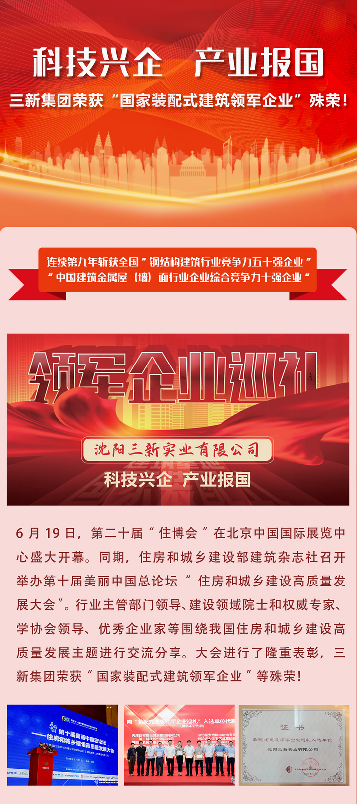 科技興企,產(chǎn)業(yè)報國——三新集團榮獲“國家裝配式建筑領軍企業(yè)”殊榮!