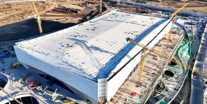 秋碧如洗的渾河之畔,“云上冰玉” 正以出水芙蓉之姿亭亭玉立。這座總建筑面積達 26.38 萬平方米的冰上巨構(gòu),將 “城市與自然共生” 的理念凝于鋼筋鐵骨,其中 13.57 萬平方米的國家速滑館更以流線型弧面勾勒出渾河的靈動 —— 空中俯瞰,三新實業(yè)打造的屋面恰似鎏金鳳冠,在北國陽光下流轉(zhuǎn)著技術(shù)與藝術(shù)交融的光芒。
