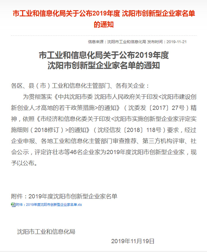 2019年11月19日,洪長禧總經(jīng)理被沈陽市經(jīng)信委授予2019年度沈陽市創(chuàng)新型企業(yè)家稱號。這是對我公司一直以來實施創(chuàng)新戰(zhàn)略成果的肯定,也是對于總和洪總領(lǐng)導(dǎo)下以設(shè)計研發(fā)人員和技術(shù)人員為代表的全體員工創(chuàng)新精神的褒獎!