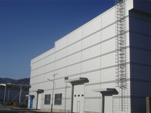 該項目建筑面積23萬㎡,由29個單體廠房構(gòu)成,跨度24~27m,100t吊車梁,主鋼結(jié)構(gòu)2.2萬噸,具有規(guī)模大、單體多、運輸距離遠、交叉作業(yè)多、現(xiàn)場環(huán)境惡劣等特點。太原項目部協(xié)同生產(chǎn)技術(shù)人員,對470屋面板生產(chǎn)的操作平臺等安裝設(shè)備及工裝進行了技術(shù)改造,極大提高生產(chǎn)效率,同時降低了設(shè)備移動的運輸成本。通過公司各部門的密切合作,該項目順利保質(zhì)保量按期完工。