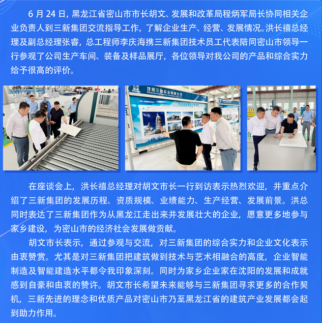 同根同源,共謀發(fā)展——黑龍江省密山市市長(zhǎng)胡文一行赴三新集團(tuán)調(diào)研交流工作