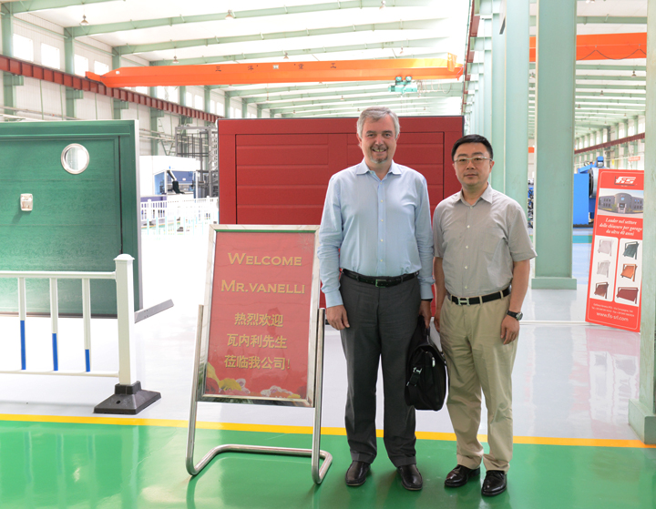 2015年7月10日,應(yīng)公司邀請(qǐng),世界電梯領(lǐng)跑者意大利沃迪克集團(tuán)公司高管瓦內(nèi)利先生訪問(wèn)我公司。瓦內(nèi)利先生在公司總經(jīng)理洪長(zhǎng)禧先生的陪同下考察了公司柔性金屬板材生產(chǎn)車間,客人對(duì)公司先進(jìn)的生產(chǎn)線及其生產(chǎn)管理由衷的滿意。之后于東云董事長(zhǎng)與瓦內(nèi)利先生進(jìn)行了親切友好的會(huì)談。
